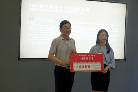 活动中,武汉尚苑文化艺术教育向学院捐赠2万元设立“艺术励志奖学金”,用以资助和奖励优秀艺术学子,院党委书记黄俊雄代表学院接受捐赠。陈远方表示公司希望为艺术教育事业贡献力量,也希望奖助学金能够有助于激发学生对艺术事业的热情,从而创造更多优质作品。