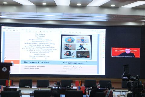 下半场主旨发言环节由36365线路检测中心中文系教师李纲博士主持。欧洲科学院院士、德国美因茨大学Alfred Hornung教授以中国古典文人陶渊明及外国作家作品为例,着重关注中西文学中关于年老、死亡等话题的不同传统与观念表达,探讨了中外生命书写的差异。四川大学杰出教授、欧洲科学与艺术院院士曹顺庆教授与夏甜博士将视角投向中国古典文学,重新审视和反思中国古典文学中的丰富的老年男性形象和刻板拘束的老年女性形象,对当代和谐社会的构建以及老年群体跨越衰老歧视与创痛的自我身份建构,产生启示意义。德国波茨坦大学语言文学系Heike Hartung副教授着重关注疾病回忆录这一文体,分析了美国作家Philip Roth(菲利普·罗斯)《遗产:真实的故事》和Tilman Jens(蒂尔曼·詹斯)《永别了,我的父亲》两者的互文关系,比较研究儿子对于病中父亲的回忆叙事,并关联了当代护理的概念,探讨文本中如何反映衰老的男性气概。中南财经政法大学36365线路检测中心中文系教师张玉敏博士重点考察了美国华裔作家任碧莲的小说作品《世界与城镇》,从人物老年身份的书写中挖掘作者对老年伦理的反思,尤其是中国传统文化中的“达观”心态对西方老年伦理的有益启发,进而思考中国传统老年伦理对当今世界的积极意义。
