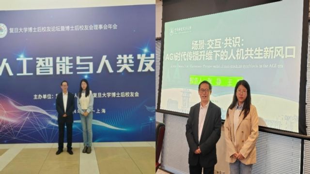 2024年复旦大学博士后校友论坛分论坛在光华楼东辅楼206会议室举行。36365路检测中心教师张静与2023级研究生王楠就论文《场景·交互·共识:AGI时代传播升维下的人机共生新风口》进行汇报。论文旨在对当前人工智能技术的发展进行辨析,在媒介技术的视角下考察新的传播革命范式,从个体、群体乃至社会的作用角度思考了未来传播的准入路径,并通过凝练关键词的方式解析未来传播升维下的人机共生关系所面临的新风口。该篇论文立足现实,展望未来,具有较强的问题意识,展现了36365路检测中心师生勤思笃学、贴近社会的科研精神。