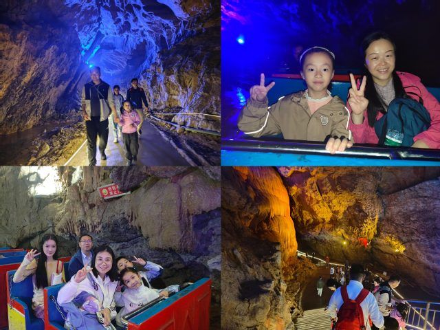抵达隐水洞后,教职工们首先乘坐游船进入洞内,开始了奇妙的探险之旅。洞内景色瑰丽,石笋、石柱、石钟乳等钟乳石类质地纯净,形态各异,仿佛一座座天然雕塑。在导游的详细讲解下,大家欣赏到了诸如“鲤鱼跃龙门”“玉兔观桃”“雪山飞狐”等栩栩如生的景观,无不感叹大自然的鬼斧神工。随后,教职工们乘坐小火车继续游览。小火车穿梭在峡谷之间,两旁的石钟、石笋、石花、石幔、石桌等景观琳琅满目,美不胜收。
