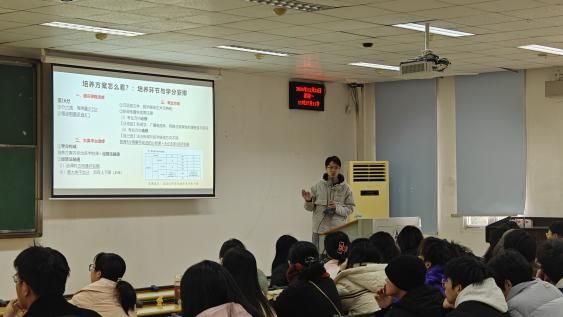 会议第二项,由新闻2201班常家硕针对如何选课、怎么选课的问题,从院系培养方案、选课规定、毕业要求、学分要求等多个重要方面,为同学们详细解析了选课流程,让同学们对选课的规则和要求有了清晰的认识。对于选什么课这一问题,常家硕为同学们提供了一套选课核心思路,帮助同学们根据自身兴趣、专业发展方向以及未来职业规划等因素,合理选择适合自己的课程,以更好地满足个人学习需求,提升综合素质。